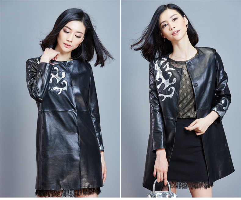 2015新款真皮皮衣女中长款秋冬长袖气质海宁皮衣外套 依奴珈同款