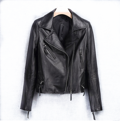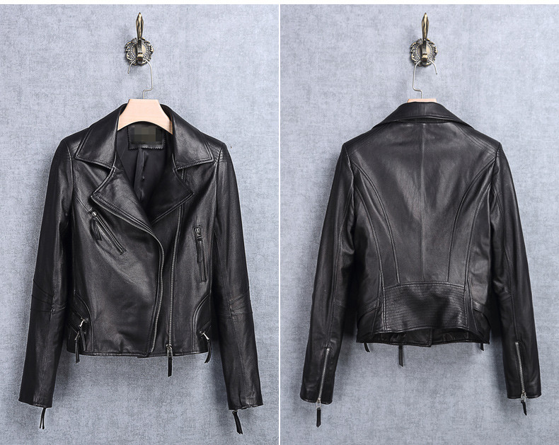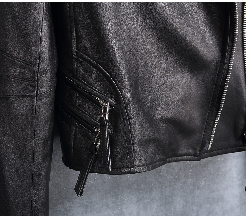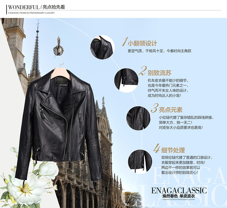 2015新款女皮衣短款韩版修身机车服 海宁绵羊皮真皮夹克 依奴珈同