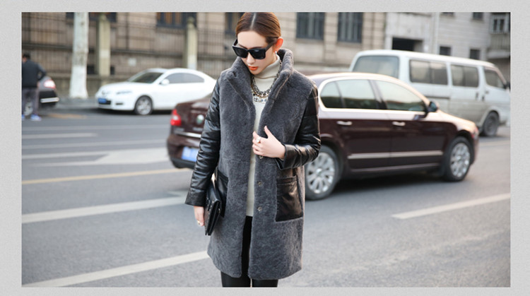 2015新款进口美利奴羊毛女装羊剪绒皮毛一体中长款皮草大衣海宁