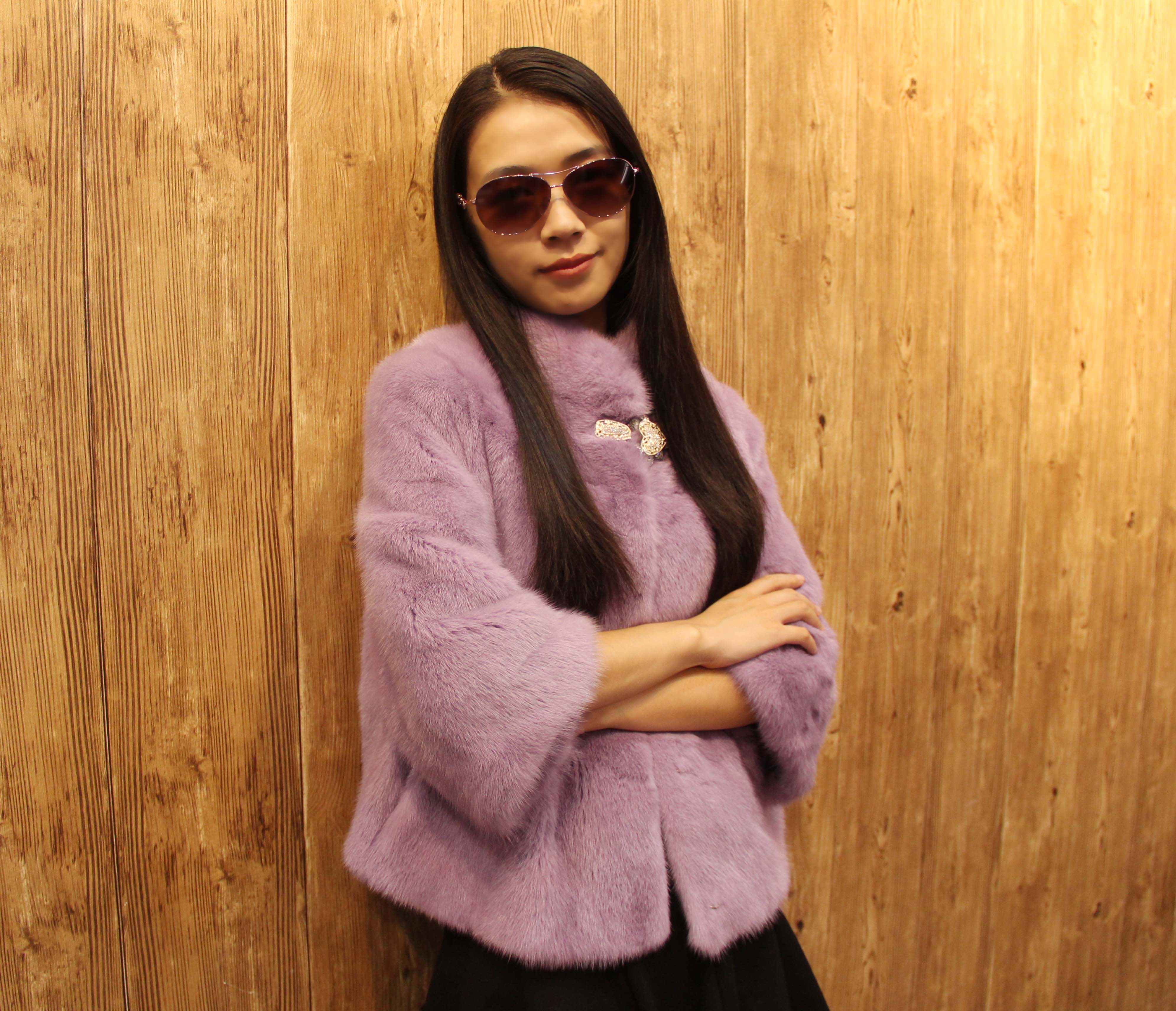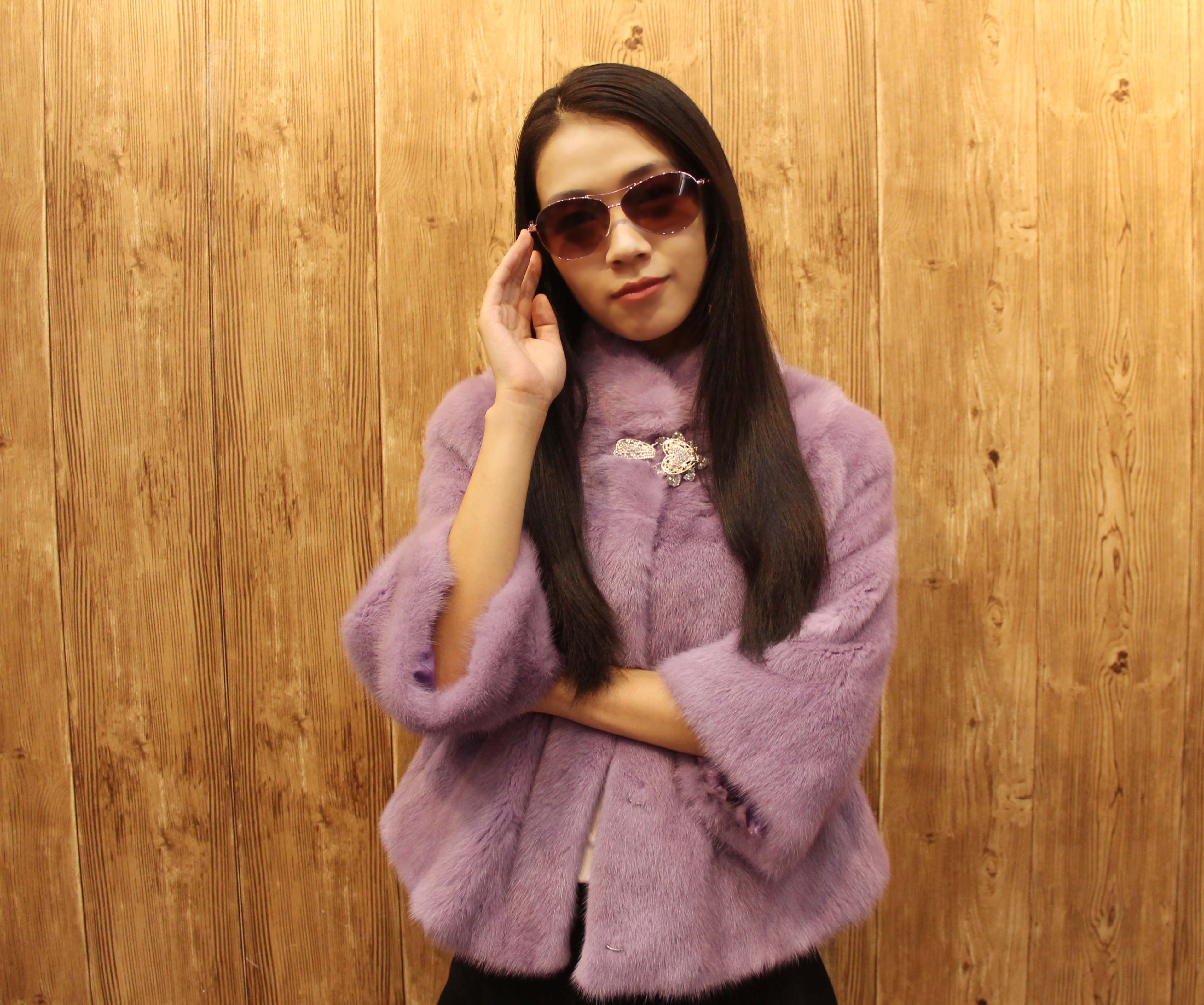 妍狐 紫色奢华气质水貂皮草