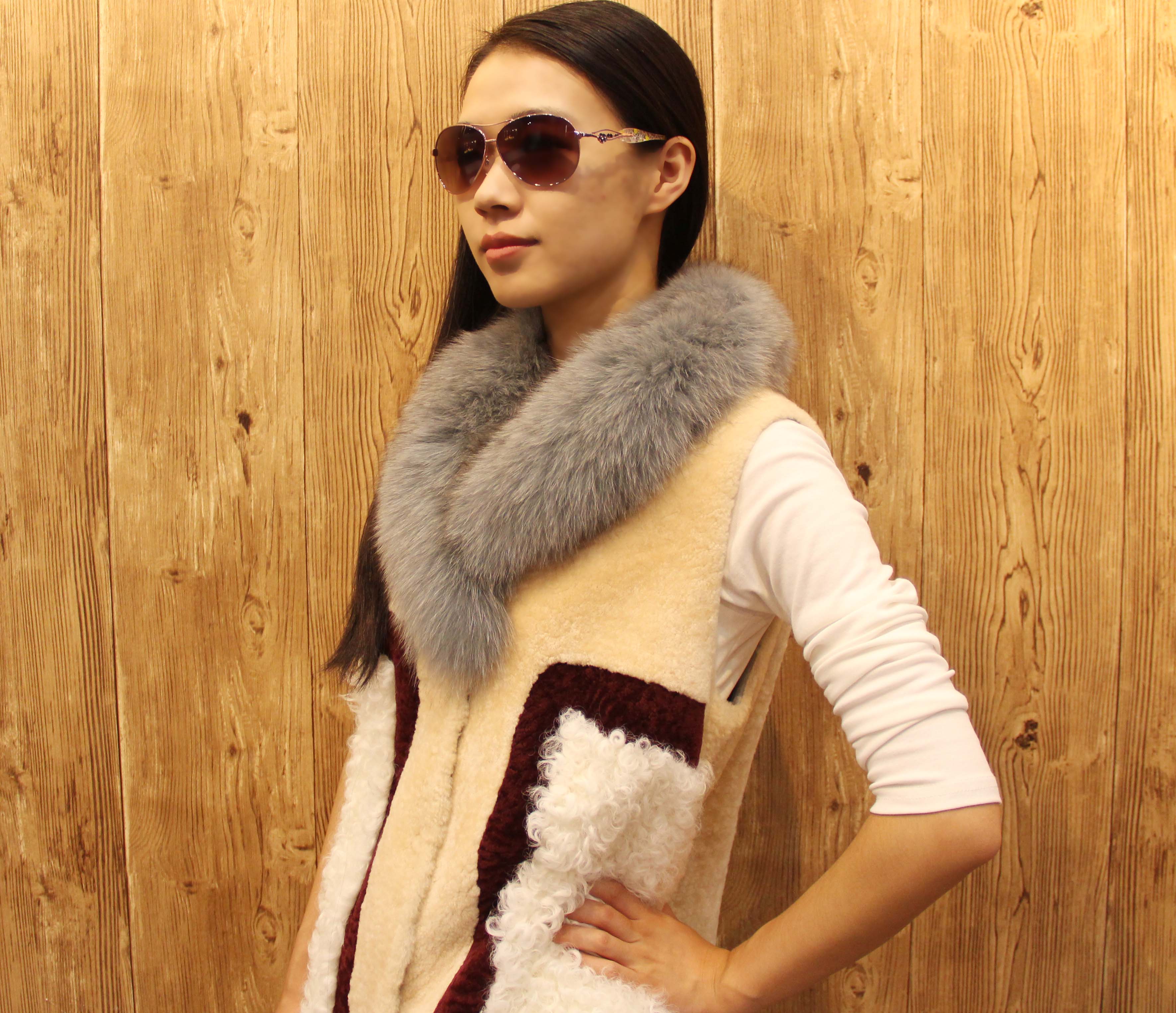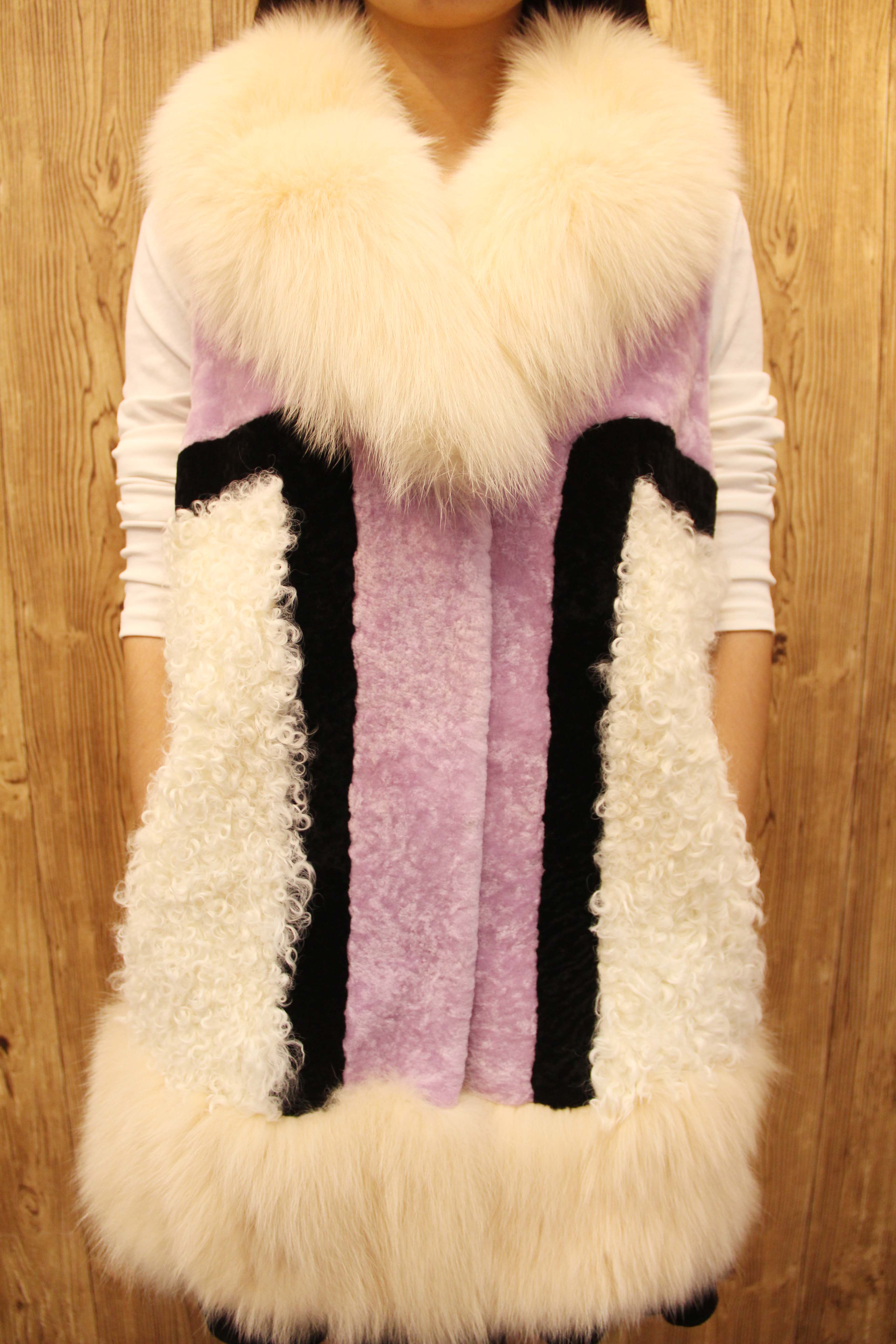 妍狐 黑白相间奢华气质水貂皮草
