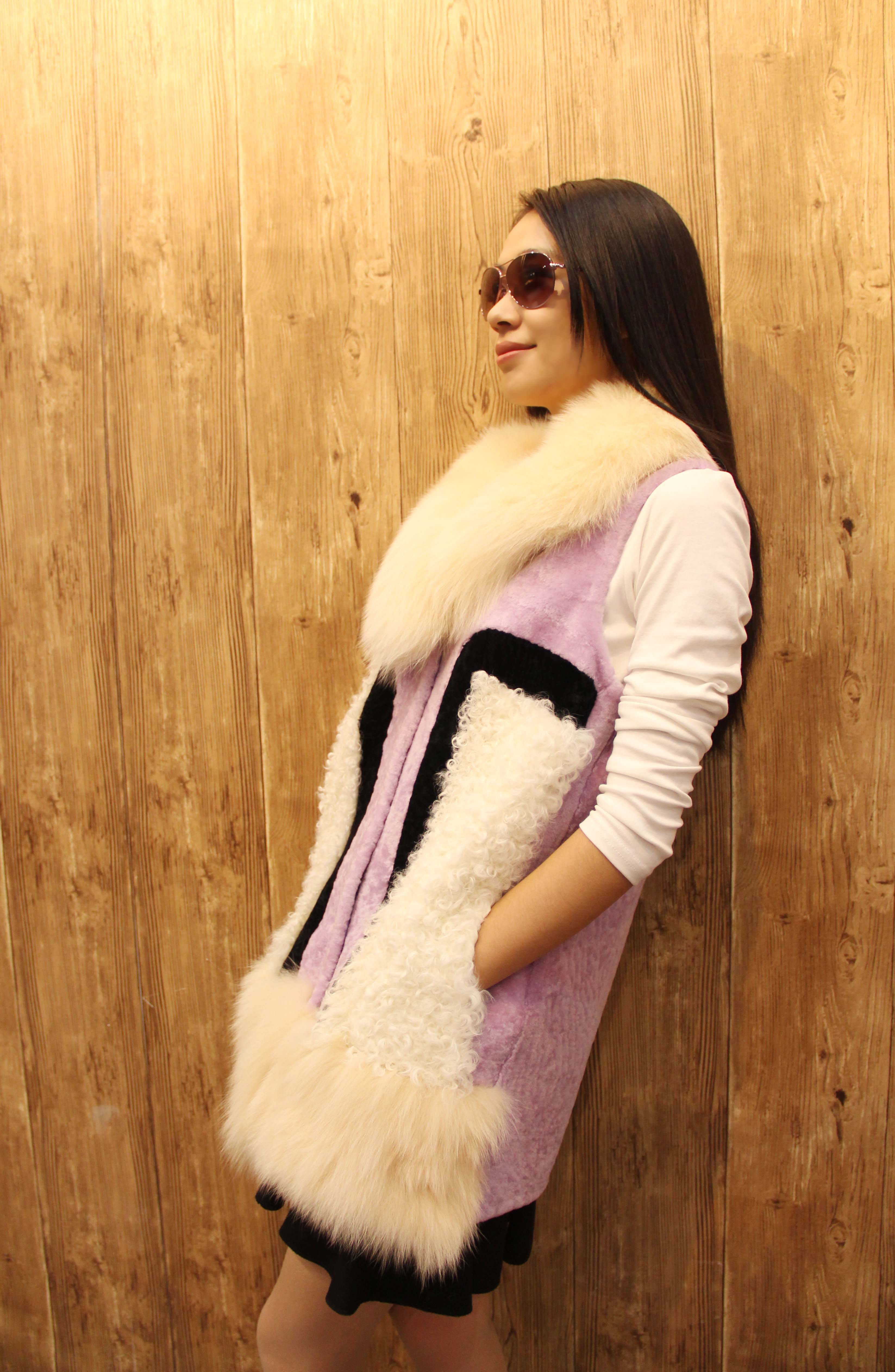 妍狐 紫色奢华气质水貂皮草