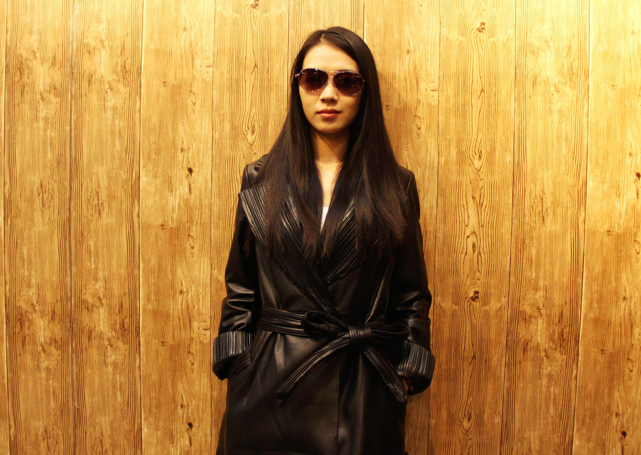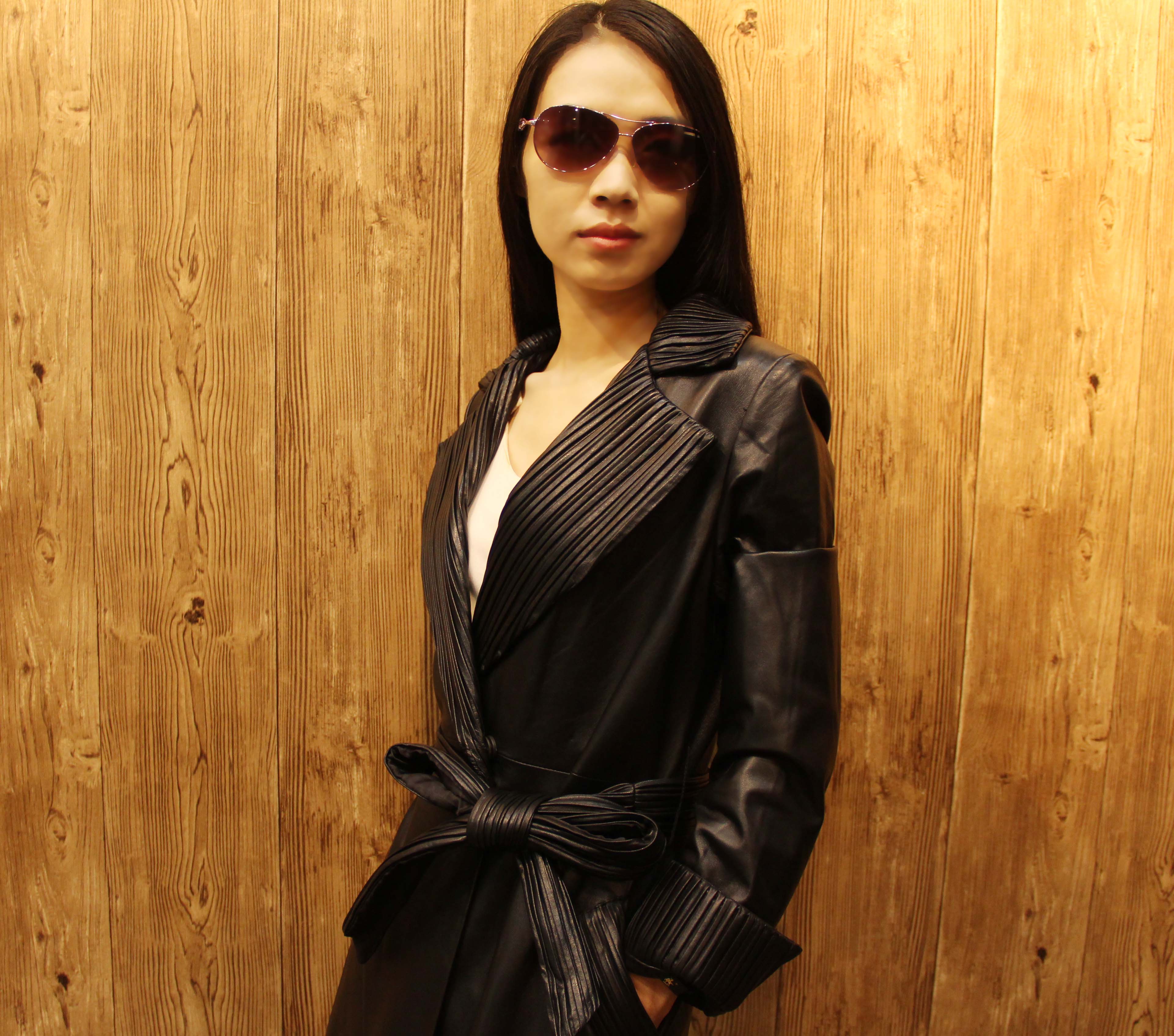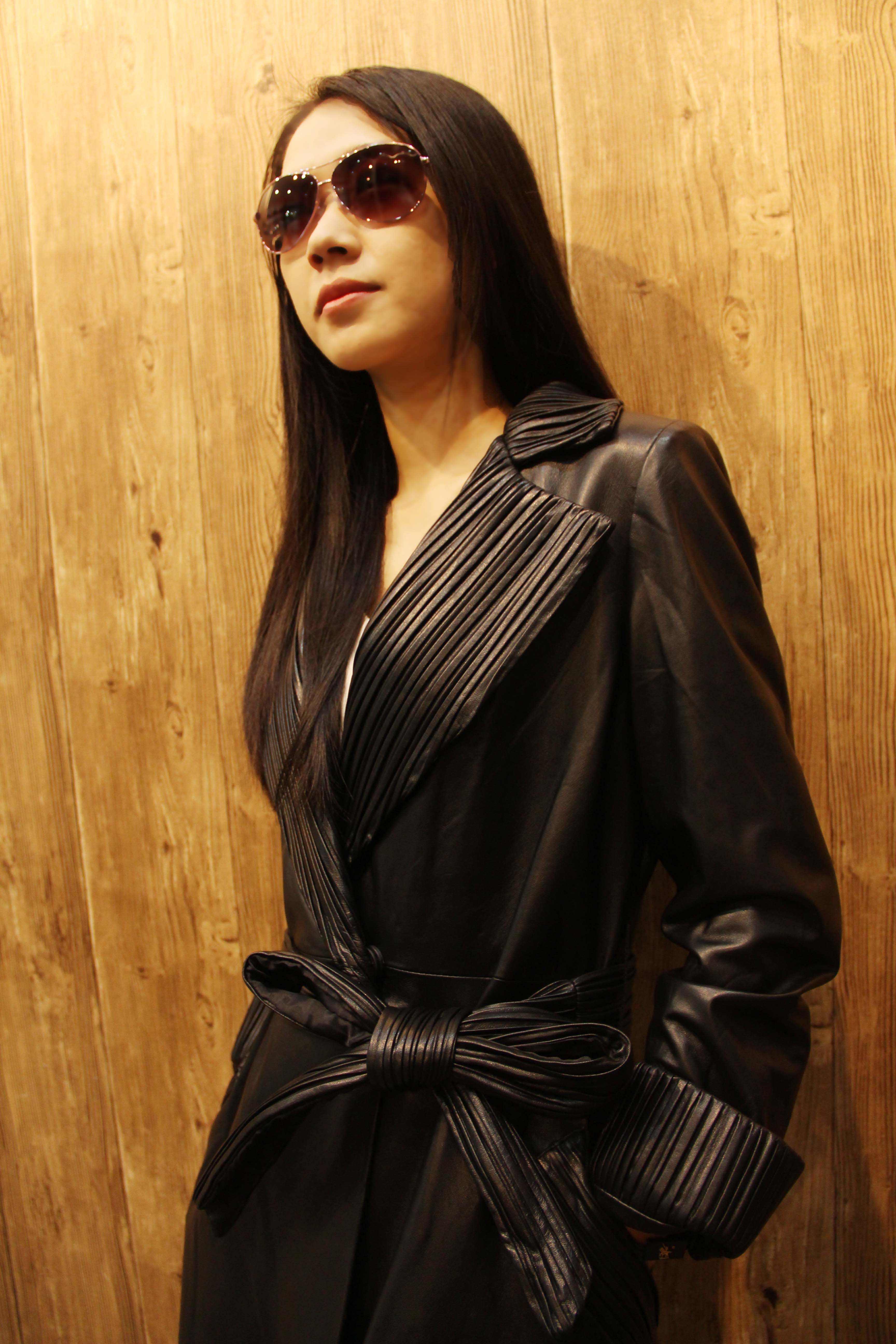 妍狐 V领长款皮衣外套