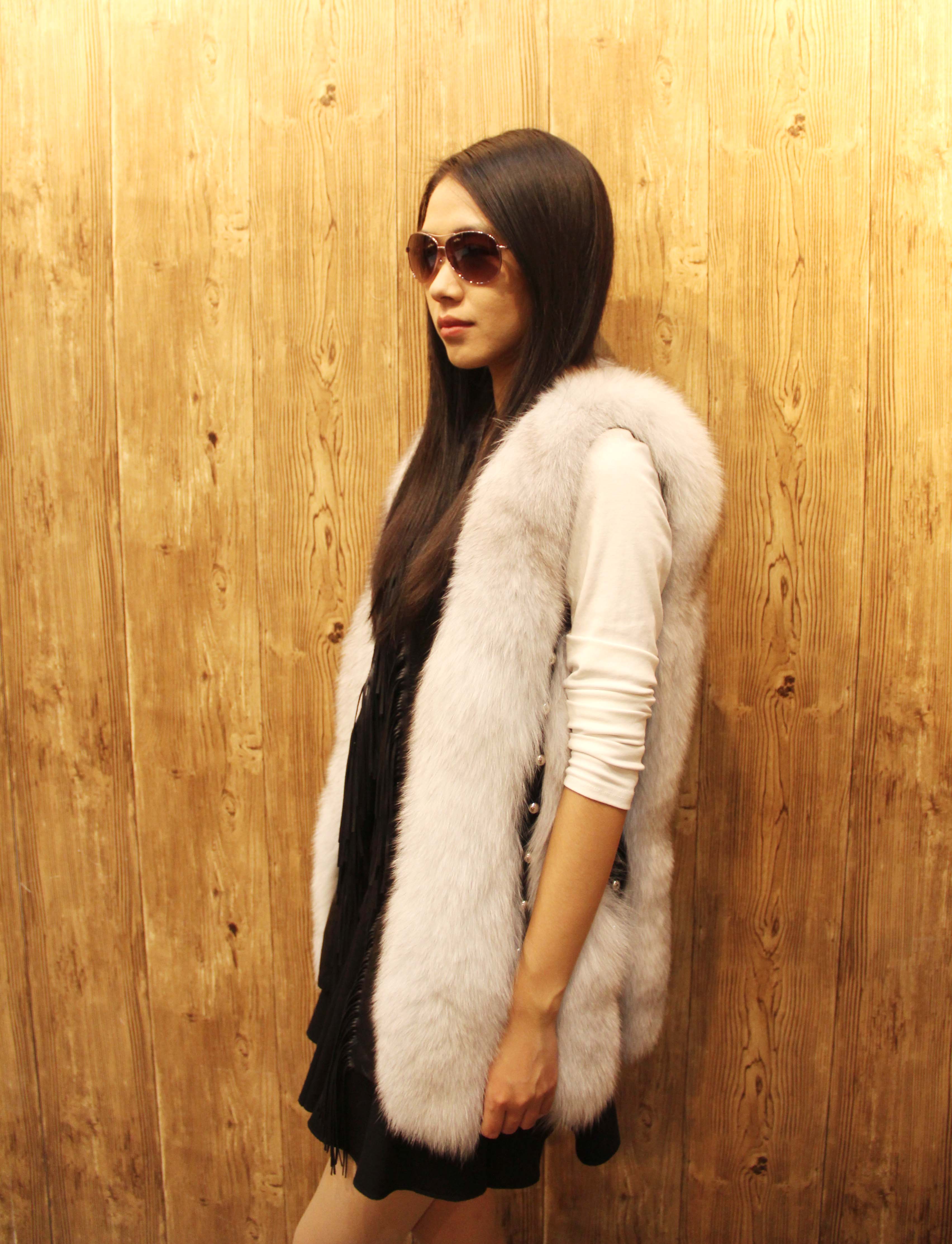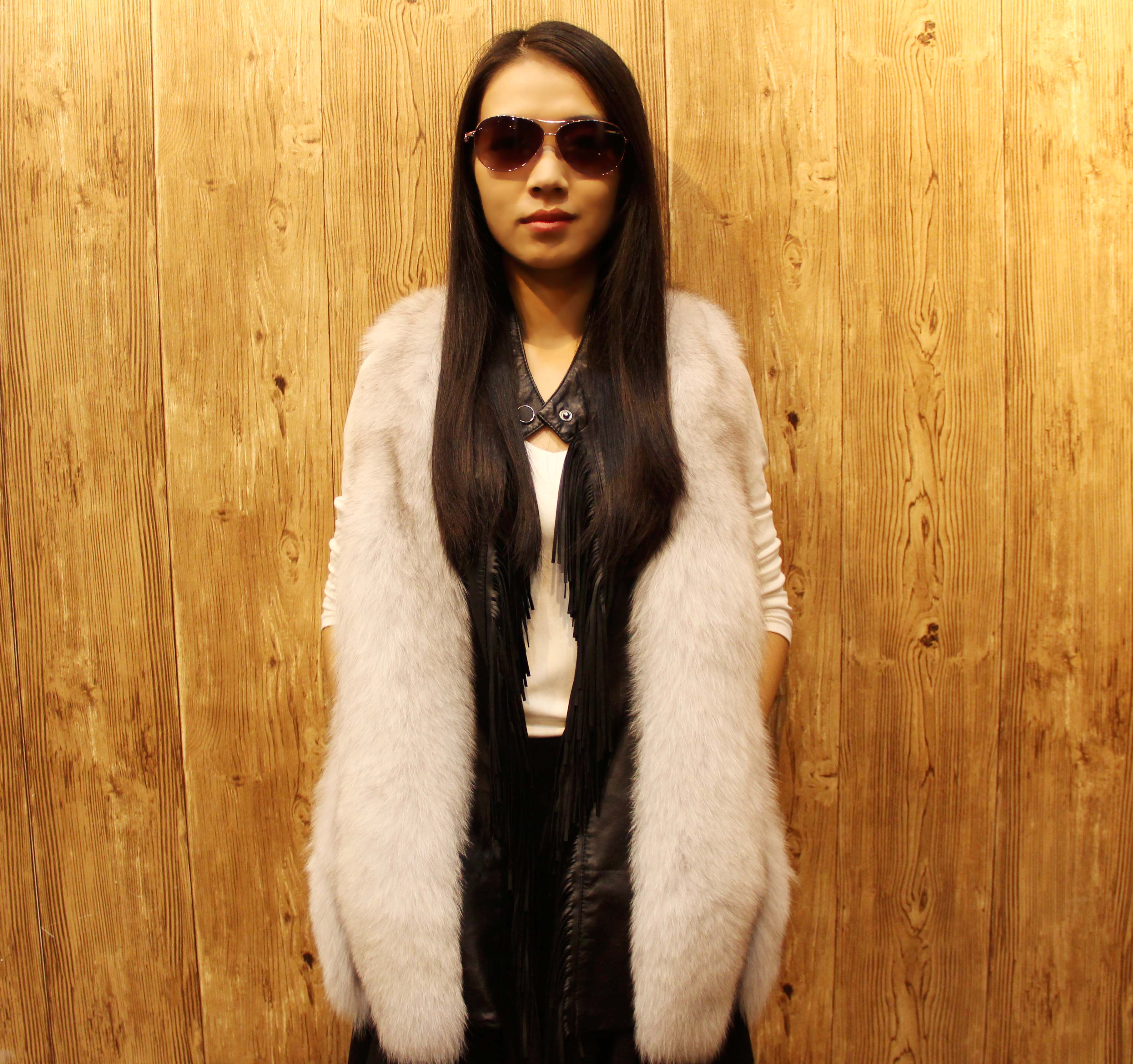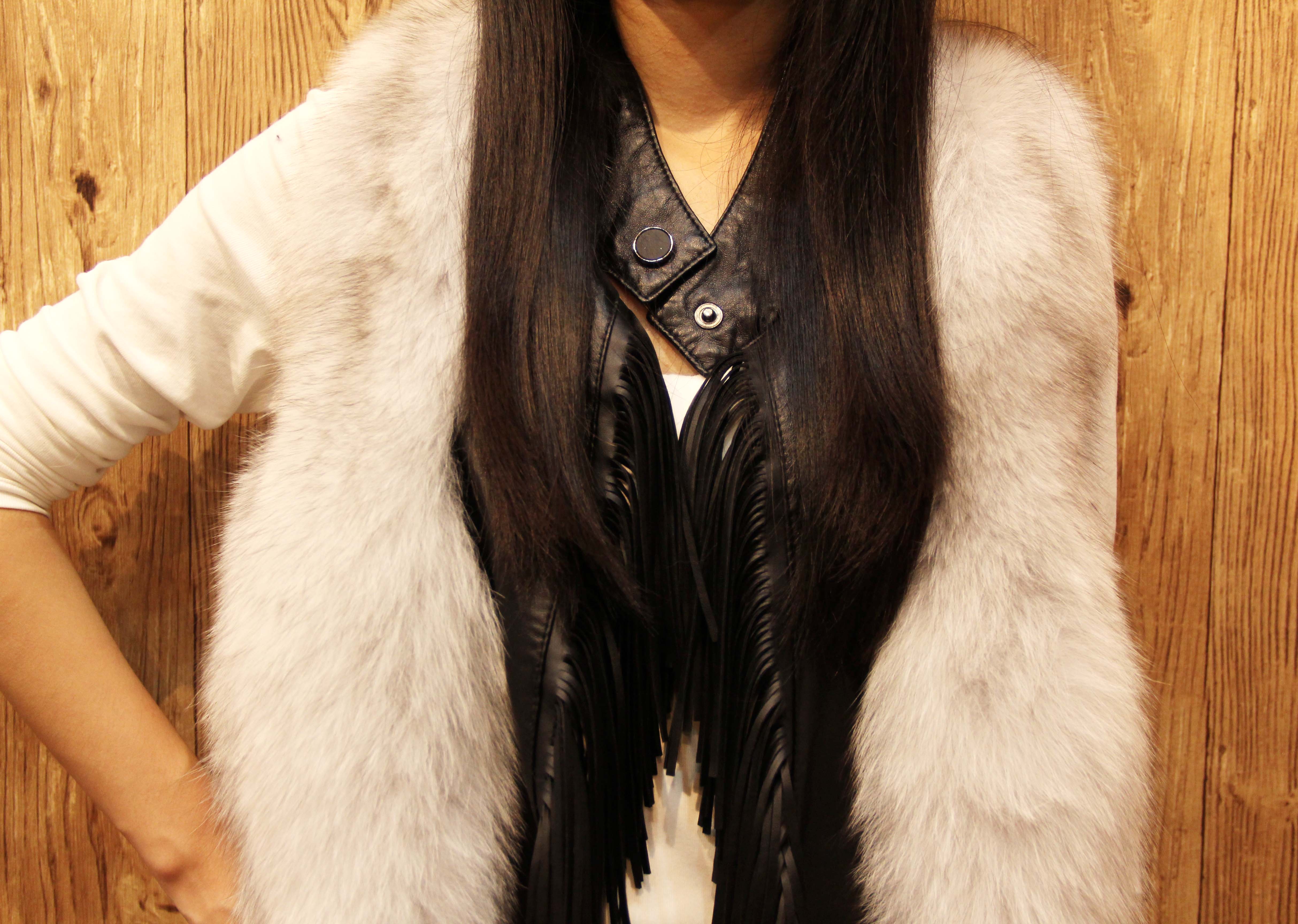 妍狐 拼接流苏水貂皮草