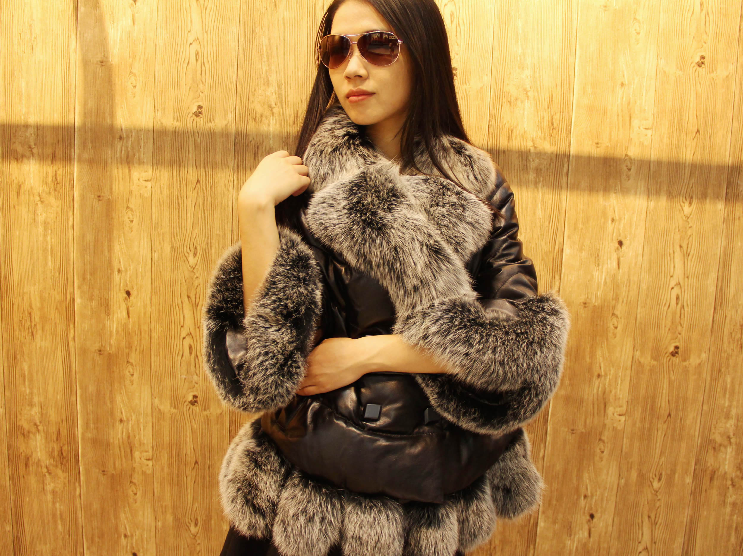 妍狐 黑色奢华气质水貂皮草