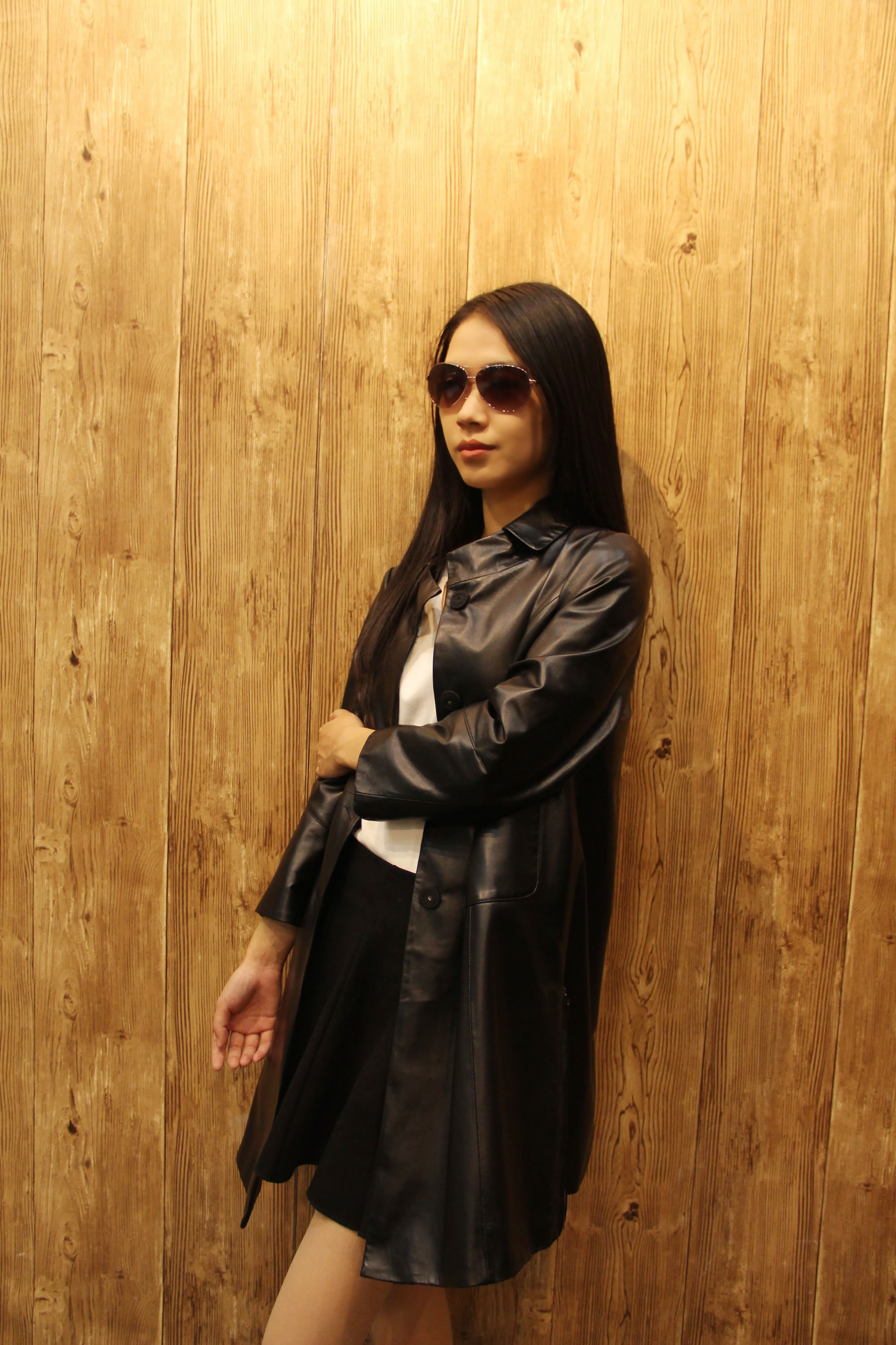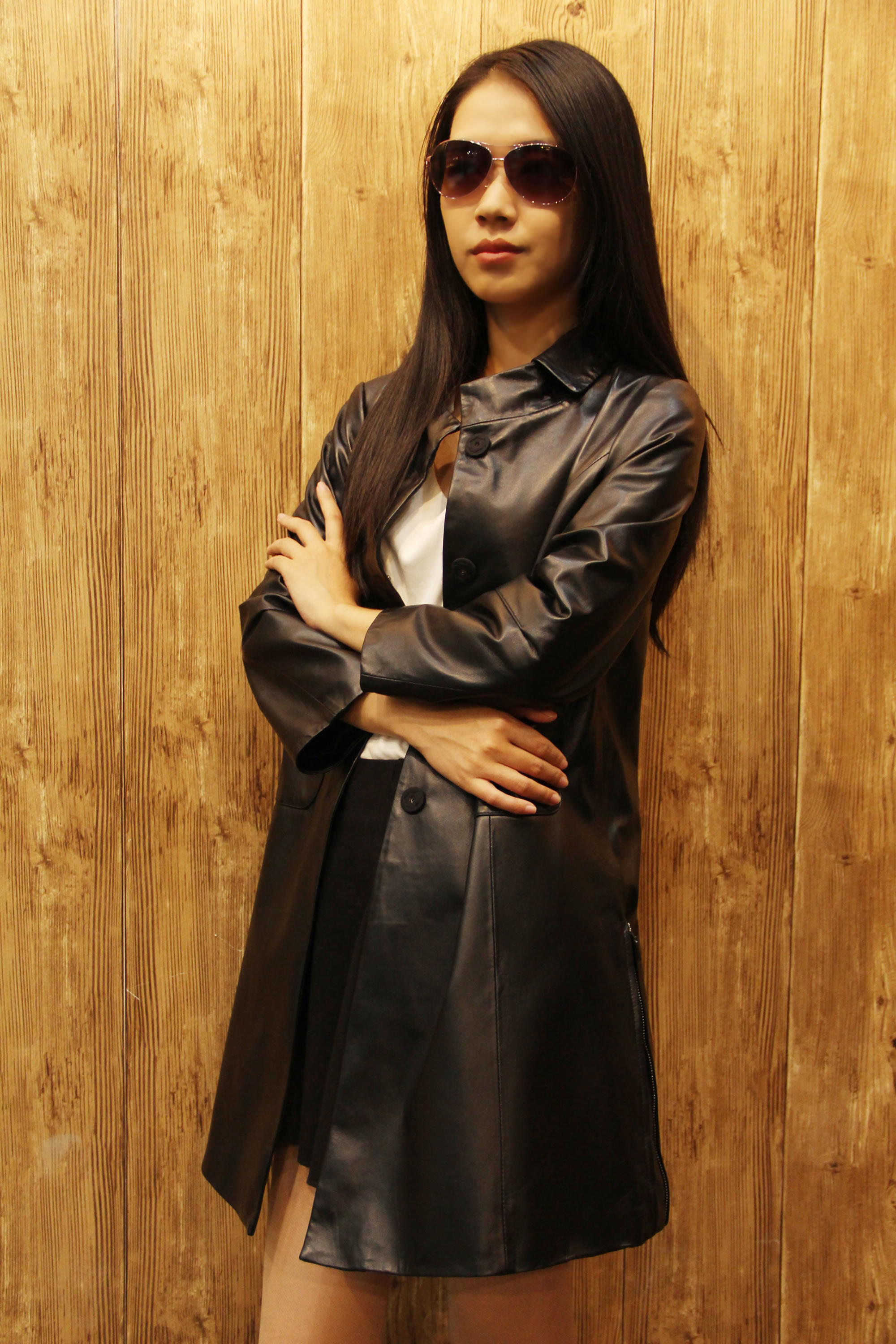妍狐 裸色气质皮衣