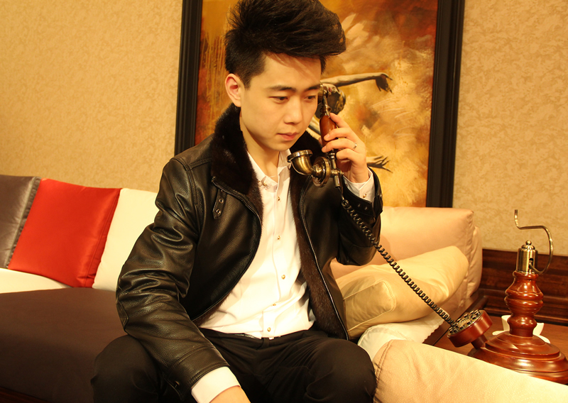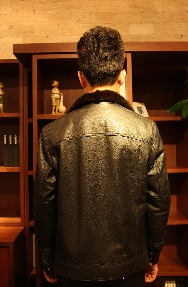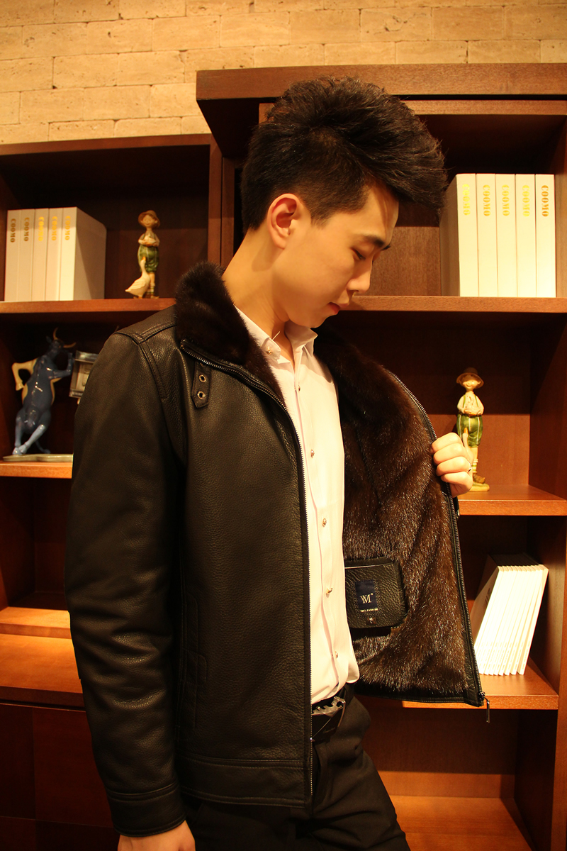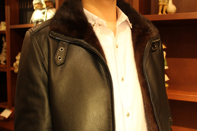 戈弟 黑色牛皮水貂皮衣