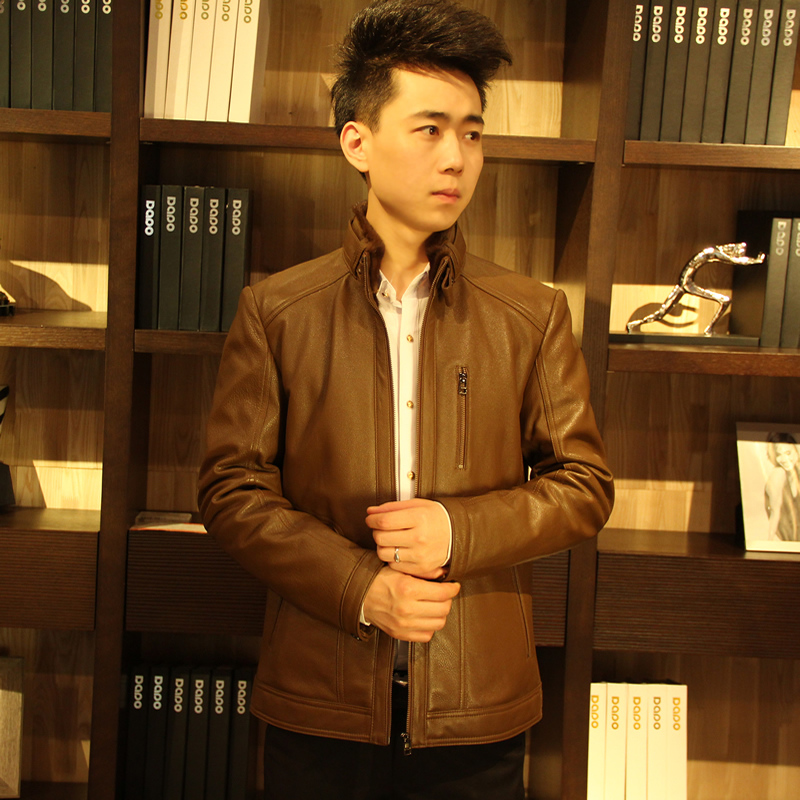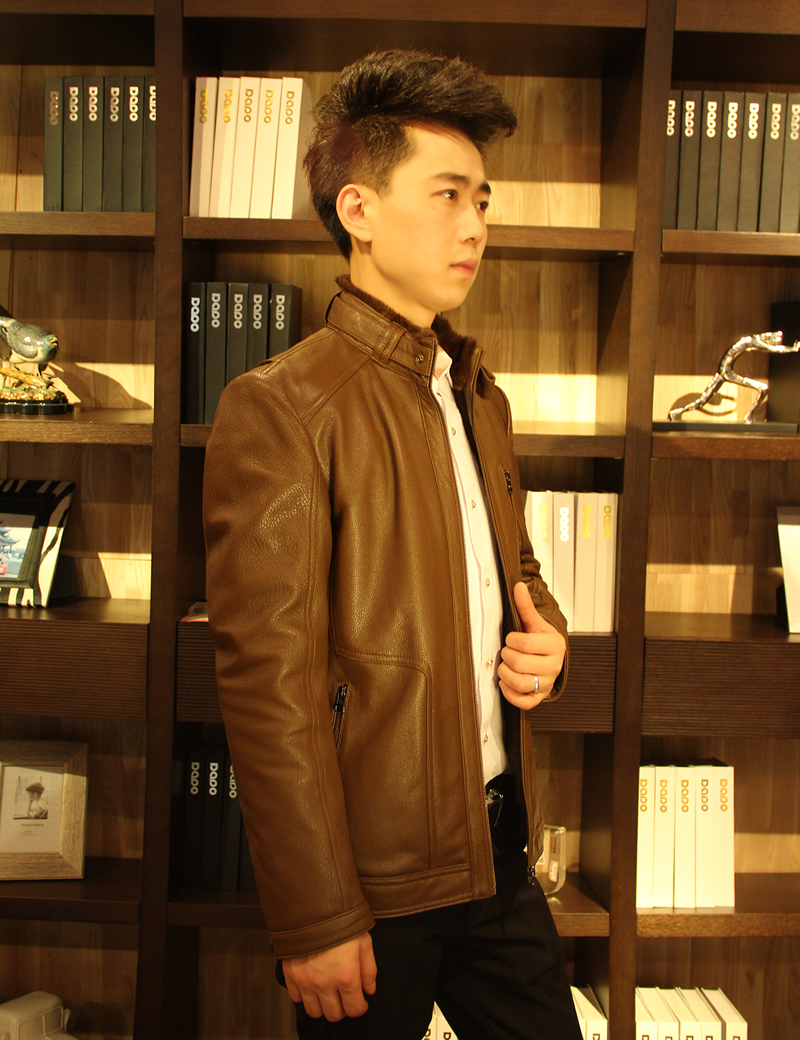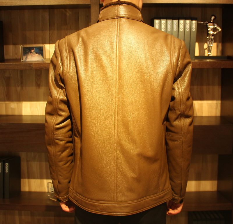 戈弟 香槟色水貂牛皮真皮夹克外套