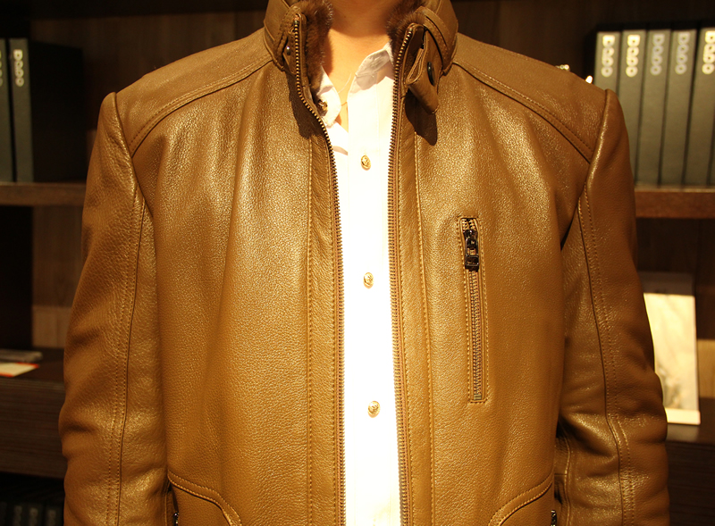 • 戈弟 黑色山羊皮驼绒夹克衫