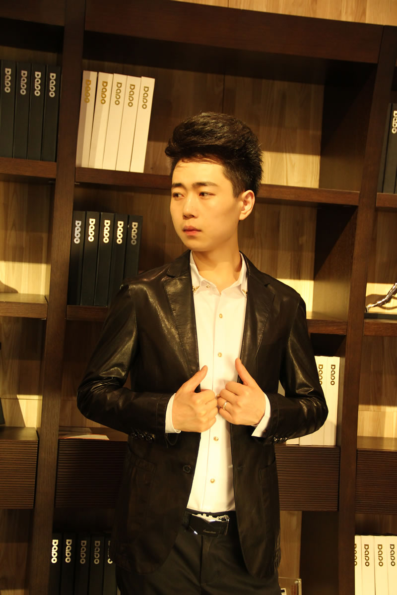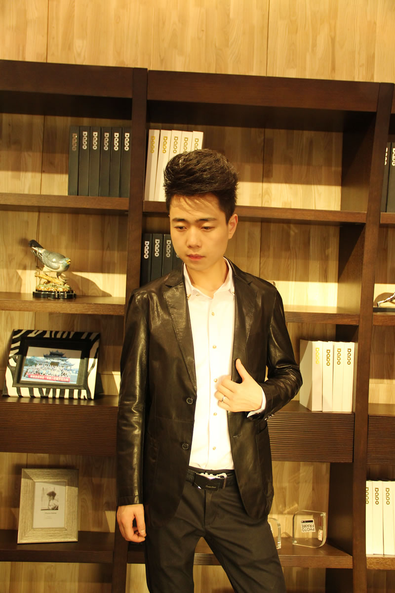 戈弟 黑色山羊皮夹克衫