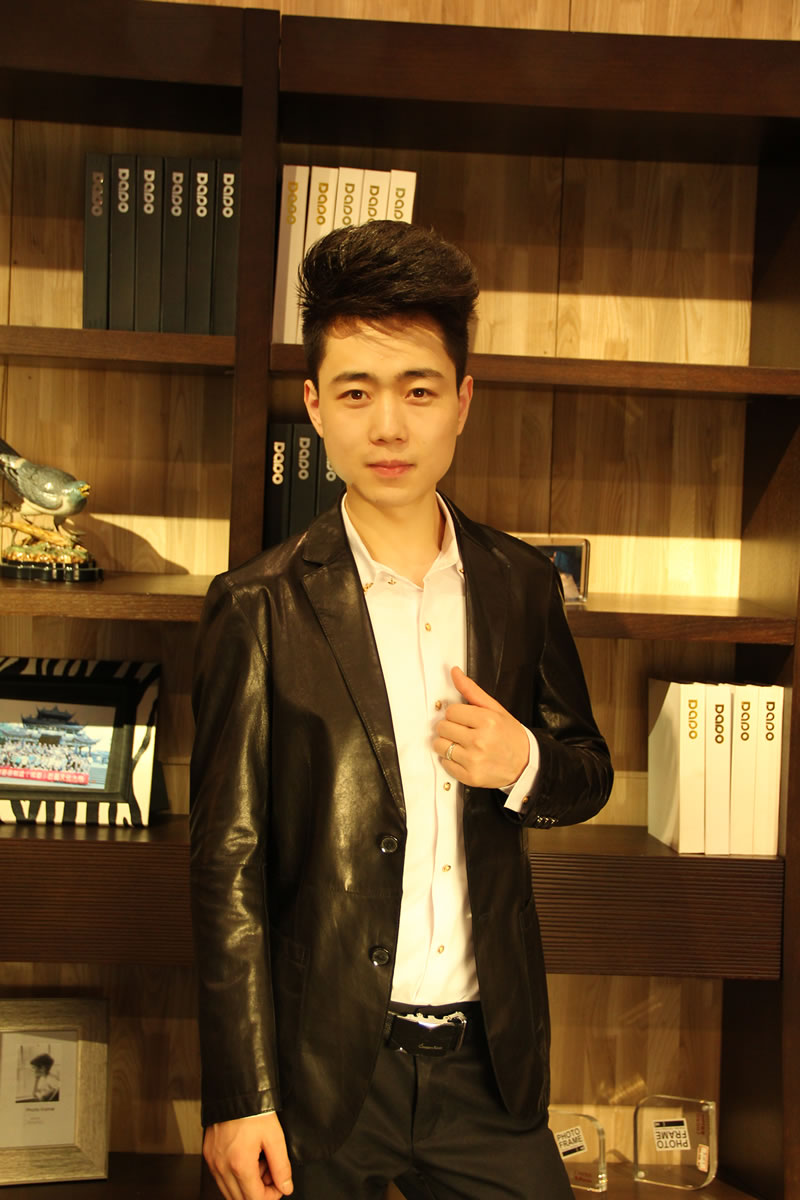 戈弟 牛血红牛皮真皮夹克皮衣