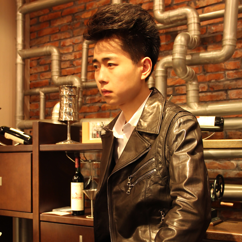 戈弟 牛血红牛皮真皮夹克皮衣