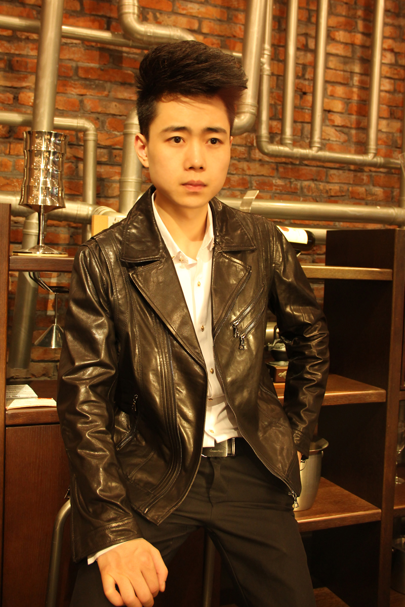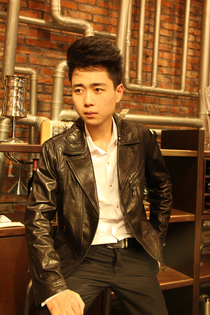 戈弟 黑色山羊皮夹克衫